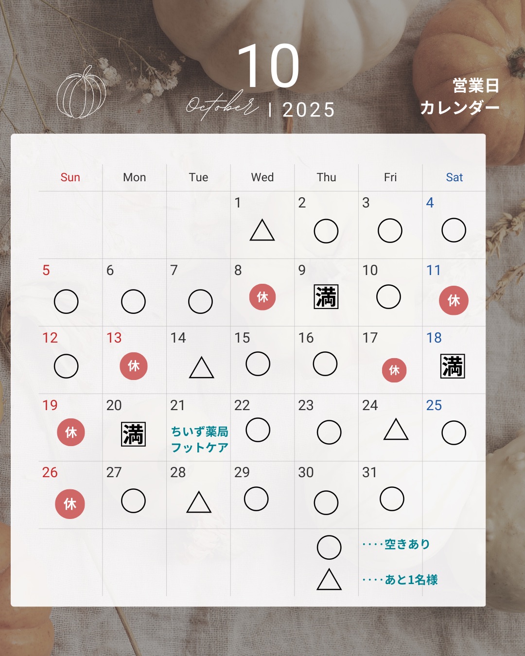 11月のスケジュ-ルのお知らせです。年末に向けてご自分のお身体のメンテナンスはいかがですか?