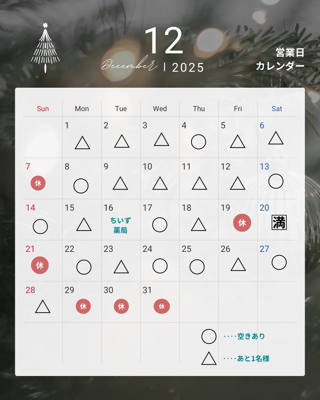 12月スケジュ-ルのお知らせ