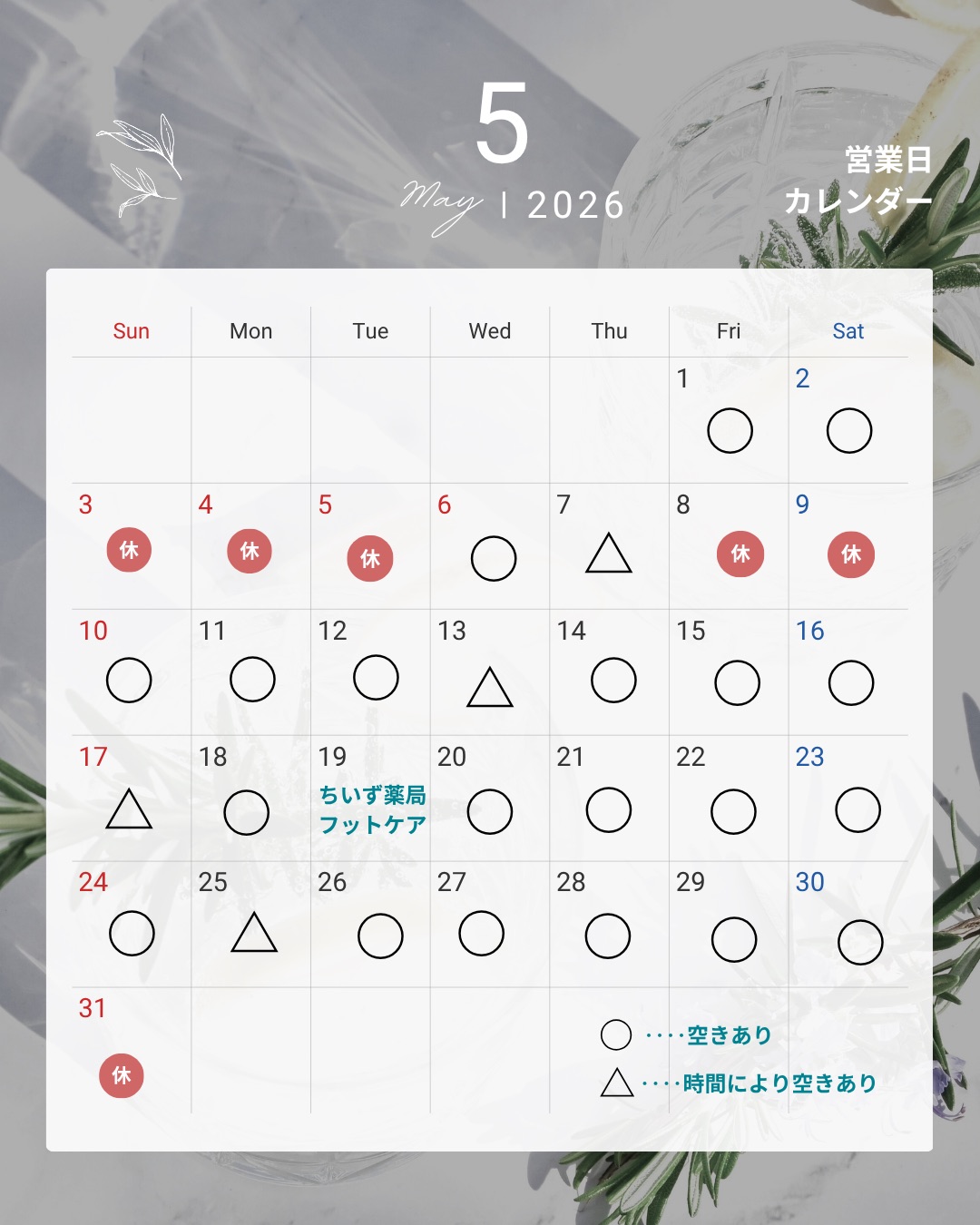 5月のサロンスケジュ-ルのお知らせです。
